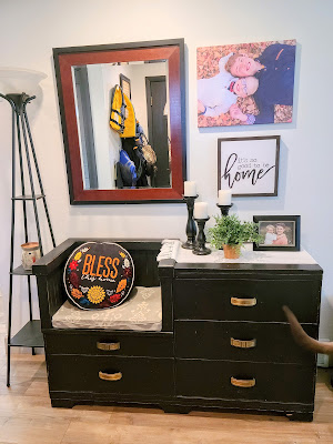 A few weeks later, while Eric was gone to a fishing tournament (around my birthday), I threw some new artwork on the walls and new covers for the couch and pillows. I later confirmed (already knowing, really) that off-WHITE was a poor choice when you have a dog. And, the couch cover never wanted to stay on. Eventually, it was just removed. Maybe we'll get a different couch next year.